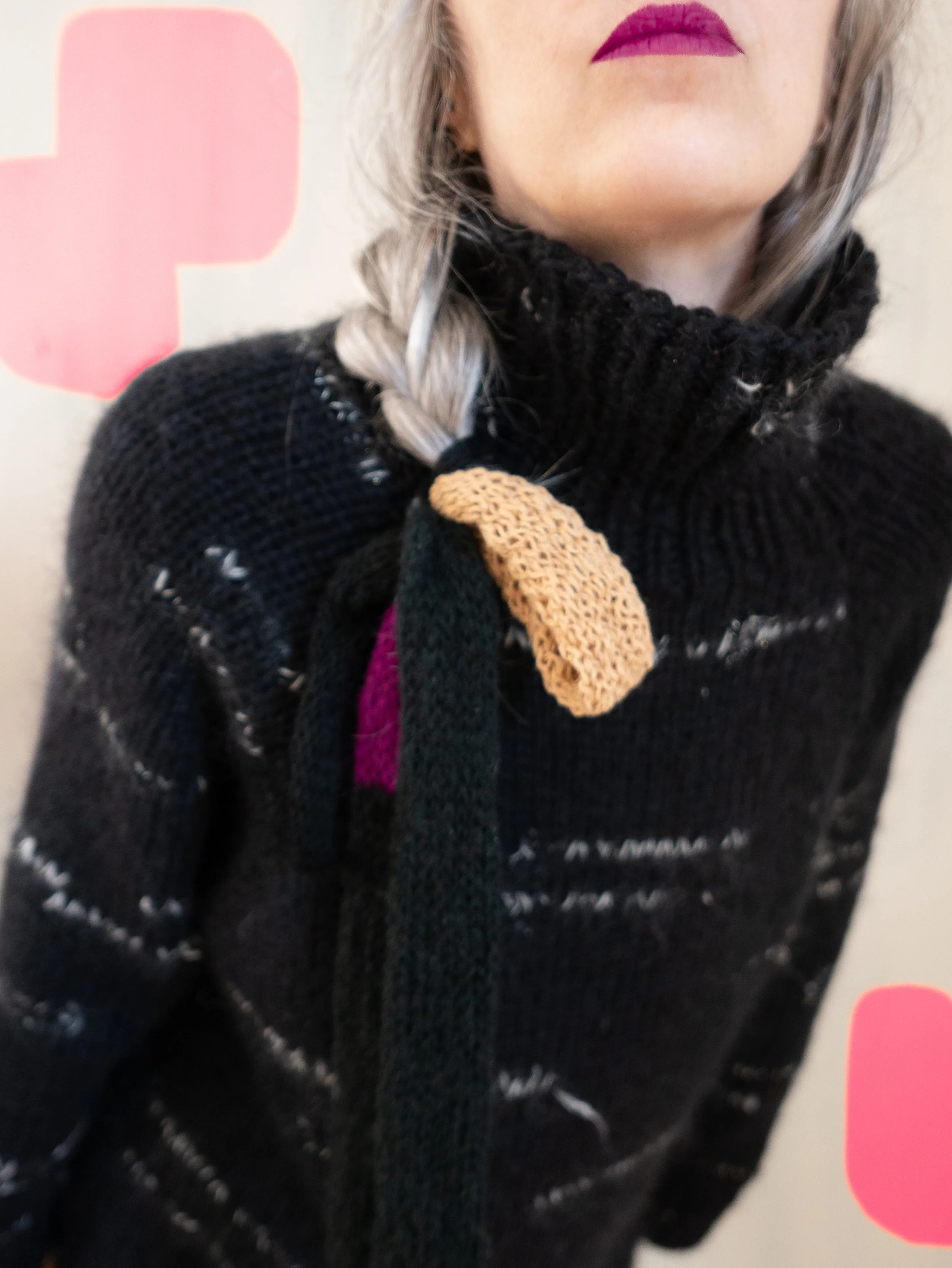 Licorice Sweater, cashmere-merino-mohair, embroidery scrap yarn. 2022